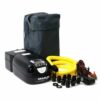 Двухступенчатый электрический насос высокого давления GP-80 BD работает от автомобильного аккумулятора или встроенной аккумуляторной батареи (заряжается от электросети 220V, автомобильного прикуривателя). Производительность – 500 л/мин, регулятор давления – электронный с встроенным манометром (шаг 0, 05 Bar, диапазон 0,1÷0,8 Bar). Вес – 6 кг.