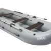 Надувная сплавная лодка. Тип крепления сидений: комбинированные (два задних передвижные, переднее на опоре)