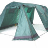 Две просторные спальни, каждая на пять человек общей площадью почти 18 квадратных метров. Можно использовать эту палатку и семьей в 3-4 человека. Тогда у вас будет большая столовая и отдельнаяспальня. Внутренняя палатка надежно защитит вас от мошкары и змей. Главное держать входы во внутреннюю палатку постоянно закрытыми.Если вы захотите сделать просторную столовую для друзей, просто снимите внутреннююпалатку и под тентом легко разместится большая веселая компания. При достаточно больших размерах палатку может установить даже один человек, но намного удобней будет устанавливать палатку вдвоем или втроем. Время установки занимает не более 10-15 минут. Все элементы, которые должны соединяться при сборке палатки, имеют сходную цветовую маркировку. Для своего размера палатка очень устойчива даже на сильном ветру, но очень важно в момент установки натянуть все растяжки и закрепить палатку по периметру колышками. У палатки три широких входа, это позволит проветривать палатку в жаркую погоду, а в дождливую погоду выбрать тот вход, в сторону которого не направлен поток дождя. На входах в тамбур есть полог из москитной сетки, это защитит вас от комаров и мошки.